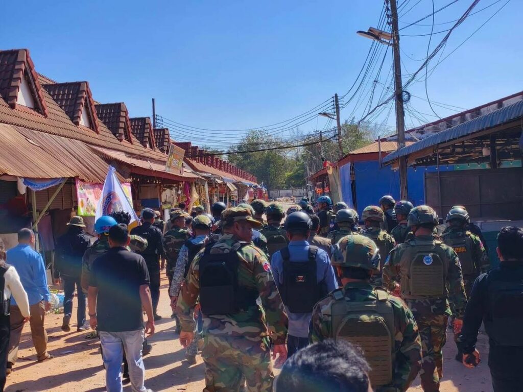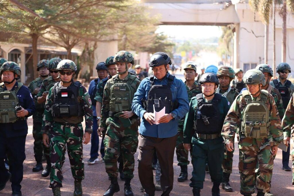 បន្ទាប់ពីមានការរំលោភបំពានយ៉ាងធ្ងន់ធ្ងរពីកងកម្លាំងយោធាថៃ ដែលបានប្រើប្រាស់អាវុធធុនធ្ងន់ផ្លោងចូលមកក្នុងភូមិសាស្ត្រទឹកដីកម្ពុជា ដែលបង្កឱ្យមានការខូចខាតហេដ្ឋារចនាសម្ព័ន្ធ ក៏ដូចជាផ្ទះសម្បែង និងទ្រព្យសម្បត្តិប្រជាពលរដ្ឋយ៉ាងដំណំ នៅព្រឹកថ្ងៃទី៨ ខែមករា ឆ្នាំ២០២៦នេះ ឯកឧត្តម មាន ចាន់យ៉ាដា អភិបាល នៃគណៈអភិបាលខេត្តឧត្តរមានជ័យ បានដឹកនាំក្រុមការងារចូលរួមជាមួយក្រុមអ្នកសង្កេតការណ៍អាស៊ាន (AOT) ដើម្បីពិនិត្យផលប៉ះពាល់ដែលទាហានថៃវាយប្រហារមកលើច្រកព្រំដែនអន្តរជាតិអូរស្មាច់ សង្កាត់អូរស្មាច់ ក្រុងសំរោង ខេត្តឧត្ដរមានជ័យ។